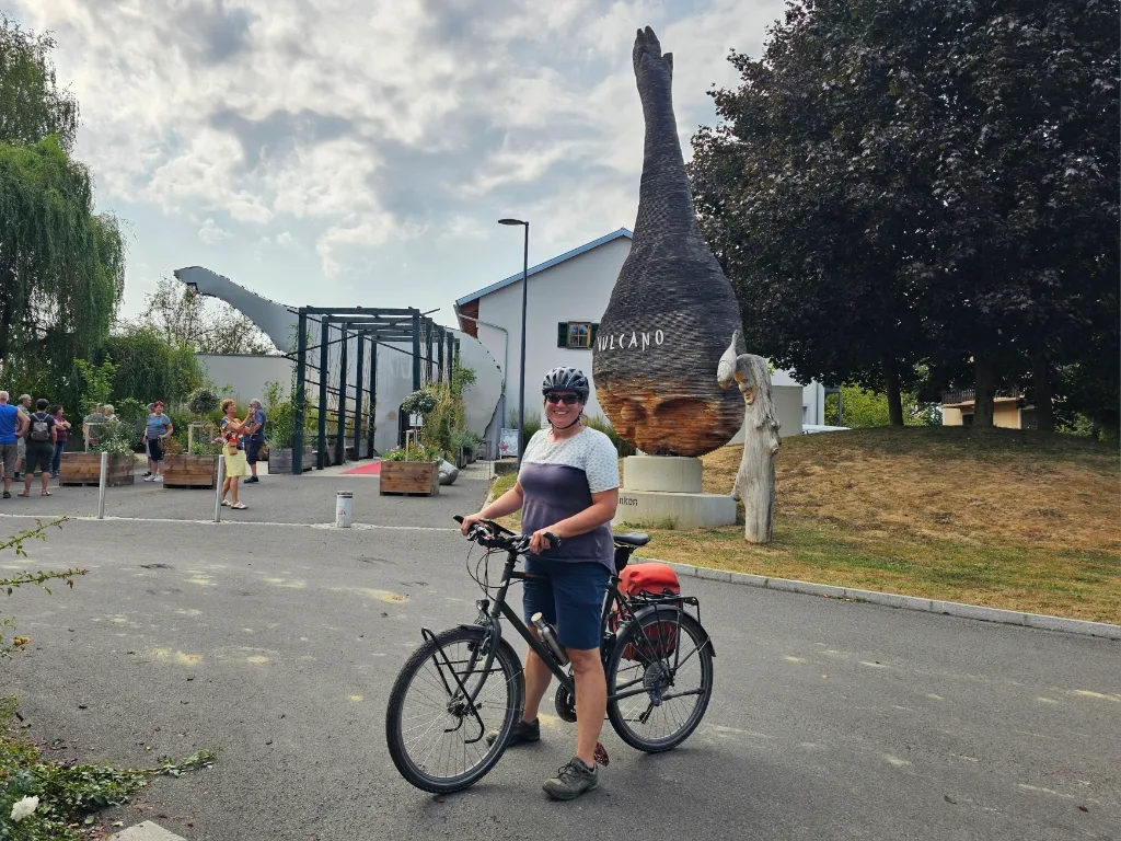 Nach dem Besuch beim Zotter überlegten wir kurz, ob wir unsere Genusstour beenden sollten, immerhin waren wir schon gut satt. Nachdem die letzte Station aber mehrere Kilometer entfernt war und wir dadurch eine kleine Verschnaufpause hatten, steuerten wir diese doch noch an: die Vulcano Schinkenmanufaktur. Und wir hatten sogar Glück. Wir durften mit einer Reisegruppe mitgehen und kamen so in den Genuss einer Führung durch die Schinkenwelt. Und natürlich gab es am Ende eine Verkostung!